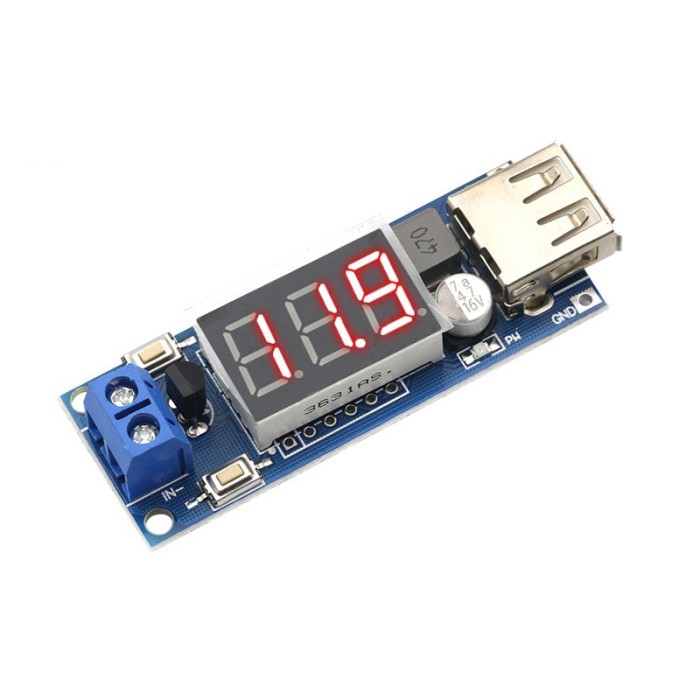 DC-DC converter step-down, IN: 4.5-40V, OUT: 5V, (2A) USB + voltmetru (DC.340)