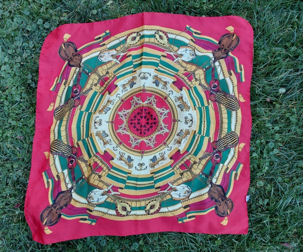 DD - Batic / esarfa Made in Italy, Italia, poliester matasos, motiv cu instrumente muzicale baroc, 77x78cm