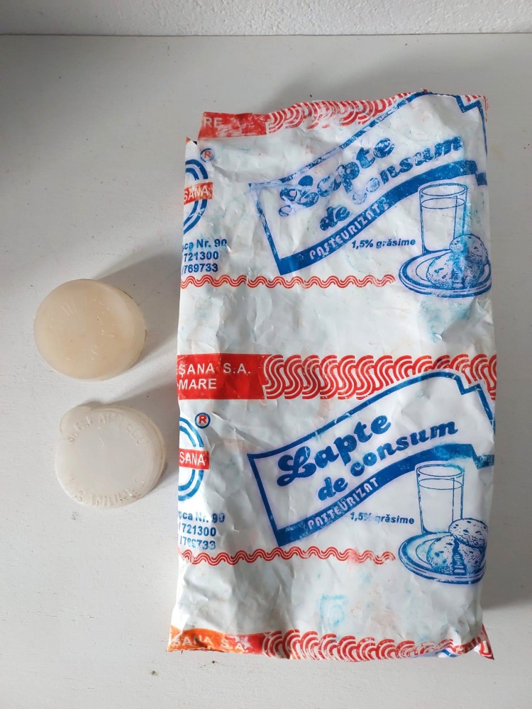 DD- Lot 2 capace vechi sticla lapte si punga ambalaj lapte STAS 143-1983