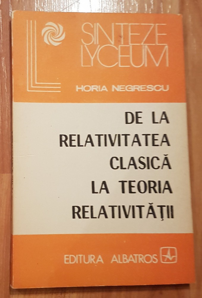 De la relativitatea clasica la teoria relativitatii de Horia Simionescu. Colectia Lyceum, Editura Albatros, 1988. 181 pagini. Stare buna