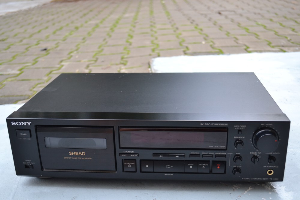Deck Sony TC K 590: Made in Japan, 3 capete, 3 motoare, usita motorizata, dolby B, C, HX PRO, MPX filter, bias calibration, iesire casti cu volum separat, afisaj mare.
