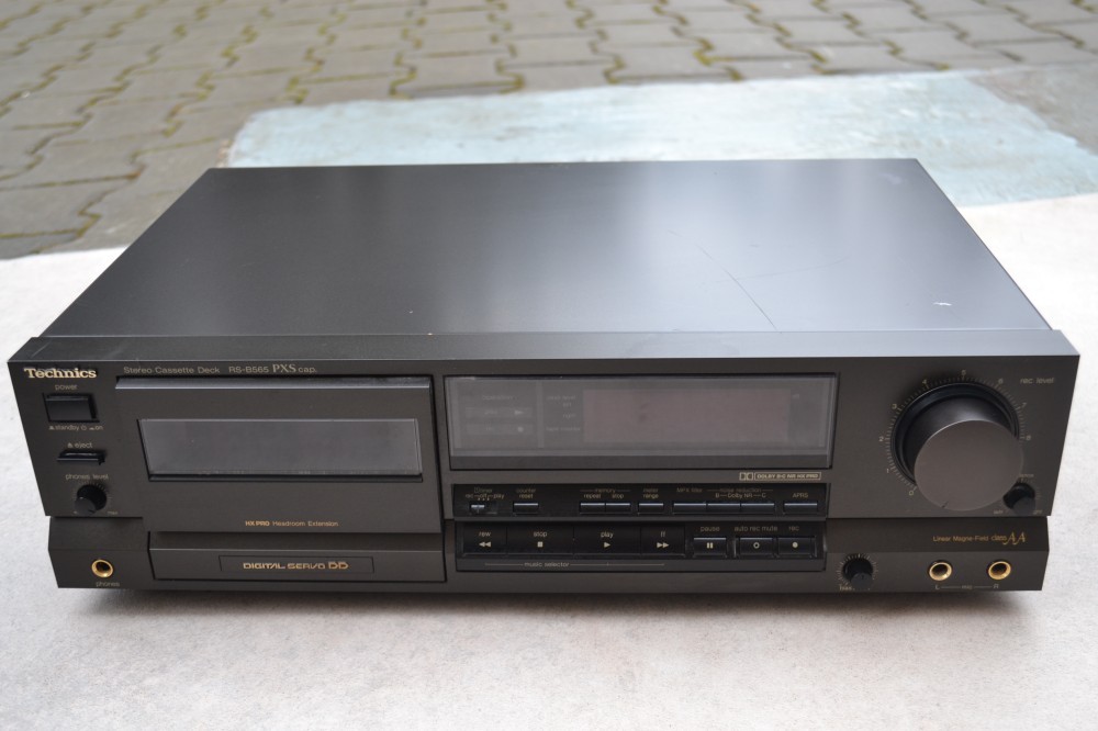 Deck Technics RS B 565 : Pxs Cap, Dolby b,c, HxPro, MpxFilter, APRS bias adjustment, Direct drive, class AA, digital servo, iesire casti, poze reale, made in Japan.