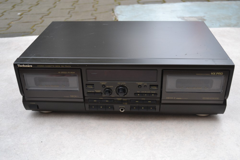 Deck Technics RS TR 474: dublu deck, autoreverse pe ambele parti, afisaj pozitionat central, Dolby B,C, Hx Pro, ATC, HiSpeed, intrare casti, usita motorizata, made in Japan.