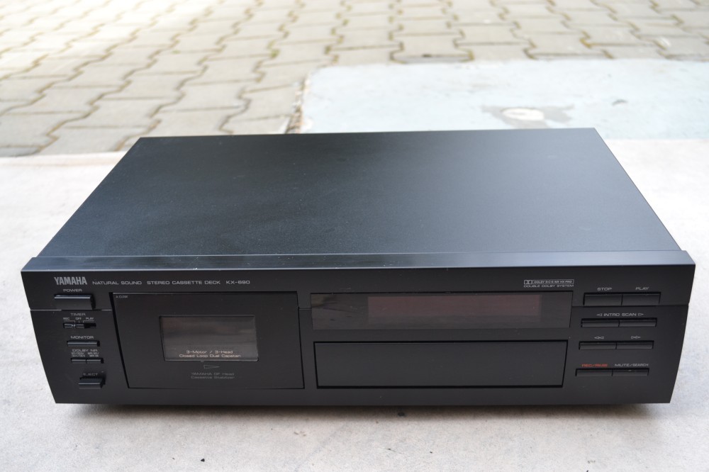 Deck Yamaha KX 690: pe 3 capete, 3 motoare, dual capstan, dolby b,c, HxPro, repeat, iesire casti, MpxFilter, GF Head, poze reale, made in Malayesia, culoare neagra.