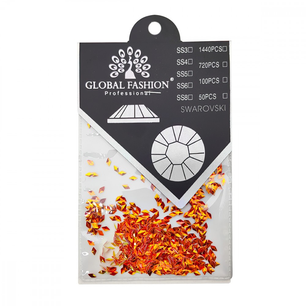 Decor pentru unghii, Swarovski, Romburi 3D, Global Fashion, culoare rosie, set 1440 bucati