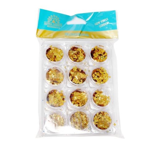 Decor unghii, paiete mix, set, auriu