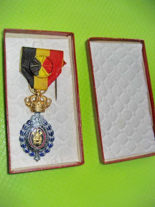 Decoratia Muncii Belgia bronz aurit si emailat in cutie originala cu panglica. Stare foarte buna de conservare inainte de razboi, deosebit de frumos realizata. Marimi: lungime 9 cm, decoratie 6/3 cm.