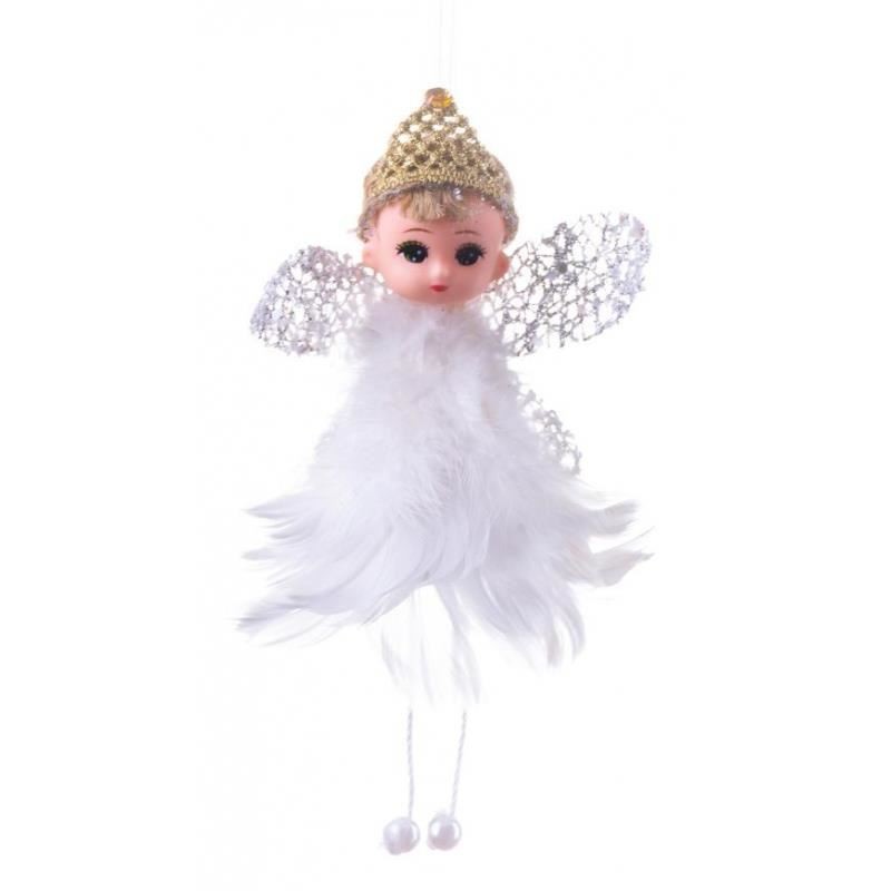Decoratiune Craciun, zana cu puf, alb, 10x7x11 cm