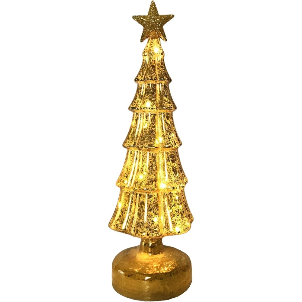Decoratiune de Craciun, Flippy, Model Brad cu Stea, din Sticla, Lumini, Baterii 3 AA, 31.5 x 9 cm, Auriu