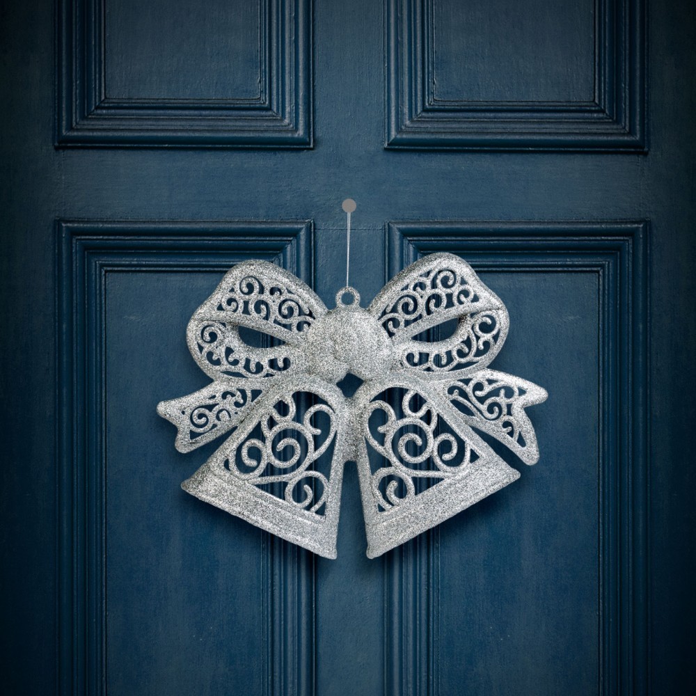 Adauga un plus de eleganta decorului tau festiv cu aceasta funda decorativa argintie, perfecta pentru împodobirea bradului, a usilor, vitrinelor sau a spatiilor largi. Datorita dimensiunii sale generoase si finisajului stralucitor, creeaza un efect vizual spectaculos, potrivit pentru orice ambient de iarna.
