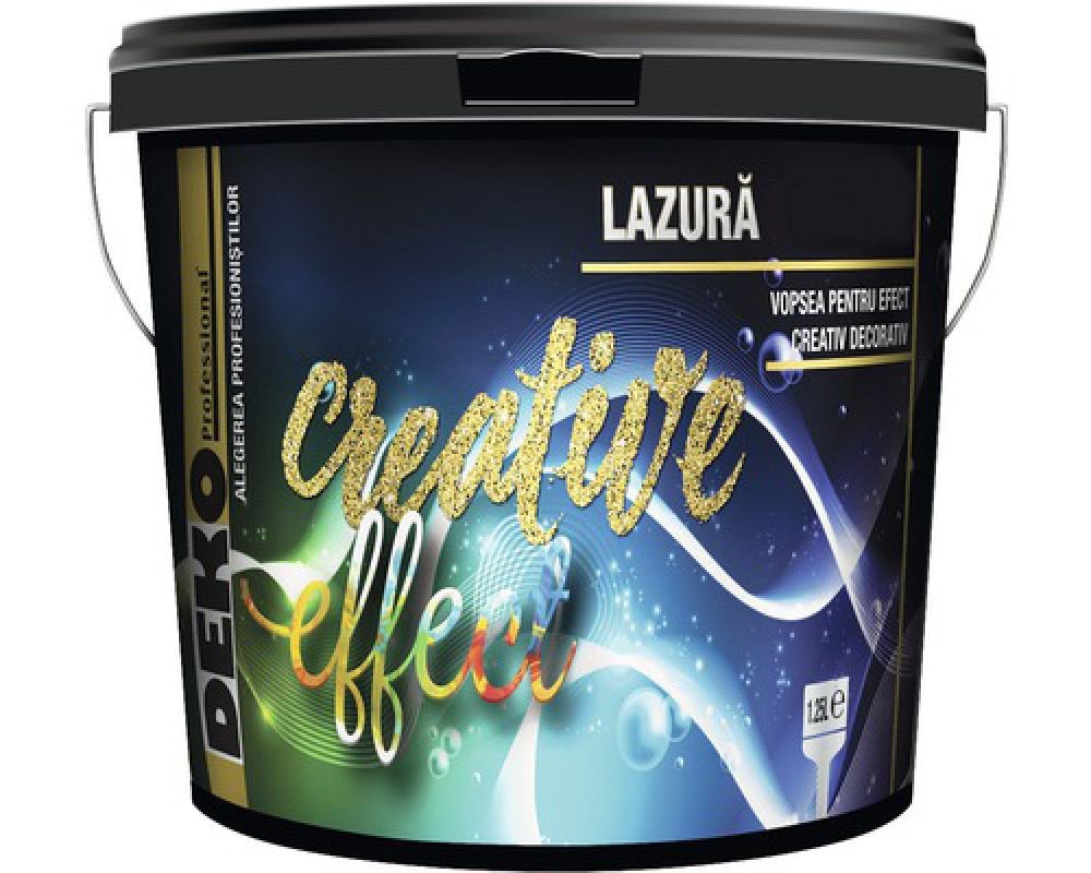 Vopseaua decorativa cu efect lazura Deko Creative Effect este un produs destinat finisarii peretilor interiori din locuinte. Vopseaua este fabricata pe baza de dispersii apoase, pigmenti speciali, extenderi si aditivi. Avantaje: produs rezistent la spalarea cu apa rezistenta mare la uzura si ingalbenire finisaj spectaculos usor de prelucrat rezistenta la murdarie si imbatranire Recomandari: Temperatura de aplicare trebuie sa fie cuprinsa intre +12C si +30C. Omogenizeaza bine continutul inainte de aplicare. Curata echipamentul cu apa atat inainte de utilizare, cat si imediat dupa folosire. Depoziteaza vopseaua in spatii uscate, aerisite, ferite de intemperii, la temperaturi de +5-30C. Mod aplicare: Suprafetele interioare noi se curata de praf si impuritati si se amorseaza cu DEKO A8500 Amorsa perete sau Amorsa perete Policolor. Suprafetele interioare vopsite in prealabil cu produse pe baza de dispersii apoase trebuie curatate de portiuni neaderente, praf, impuritati. Apoi se repara si se amorseaza cu DEKO A8500 Amorsa perete sau Amorsa perete Policolor. Aplica mai intai un strat de fond DEKO V8057 sau DEKO G8300 GRUND, alba sau in nuanta dorita si lasa-l sa se usuce bine. Aplica lazura numai prin tehnica depunerii. Imbiba unealta de lucru (manusa, burete marin sau pensula) in produs si depune vopseaua pe perete imediat. Pentru depunere cu rola de blana scurta, incarca rola cu lazura si aplica peste suportul de baza in una sau mai multe treceri in functie de efectul dorit. Vopseaua poate fi prelucrata in maxim 20 de minute de la aplicare. Consumul teoretic este de aproximativ 10-15m2/L. Timpul de uscare este de 24 ore. Produsul se comercializeaza in recipient de1.25 l Specificatii tehnice: Brand: Deko Tip produs: vopsea efect decorativ lazura perlata Culoare: silver Compozitie:dispersii apoase, pigmenti speciali, extenderi si aditivi Temperatura de lucru: +12C pana la +30C Cantitate:1,25L Tipuri de suprafata: baza minerala - zidarie, beton, tencuiala, ipsos Utilizare: interior Termen de valabilitate: 36 luni de la data fabricatiei Timp de uscare:24 ore Timp de prelucrare: 20 minute Consumul teoretic: 10-15m2/L baza Atentie ! Preturile afisate sunt valabile doar pentru culorile afisate. pentru alte culori va rugam sa ne contactati telefonic: 0733.181.199 sau pe email . Paletar culori disponibile Click Aici Acest produs se nuanteaza ! Nu poate fi folosit ca atare !