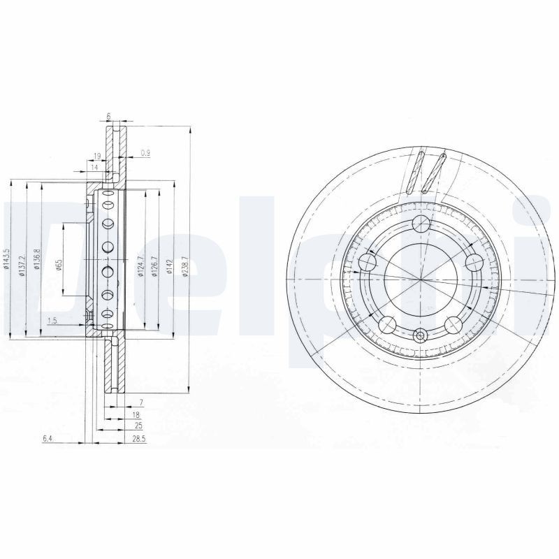 Disc frana (BG3695 DELPHI) SKODA, VW FABIA I | FABIA I Combi | FABIA I limuzina | FABIA I Praktik | FABIA II | FABIA II Combi | FOX hatchback | FOX Van | POLO | POLO IV limuzina | ROOMSTER Praktik