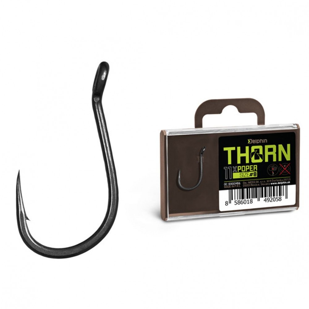 Cu ajutorul tehnologiei Ultrapoint 4.8 aplicate, a fost posibilă crearea unui vârf mai lung care oferă o ascuţime chiar incredibilă. Cârligele Delphin THORN sunt ambalate într-o cutiuţă practică, în care ascuţişul lor va fi tot timpul protejat. Suplimentar, cutia este prevăzută cu un ochet pentru agățarea în magazin, ochet care poate fi înlăturat cu ușurință fără a folosi scule ajutătoare, astfel încât să nu ocupe spațiu suplimentar în bagajul dumneavoastră.