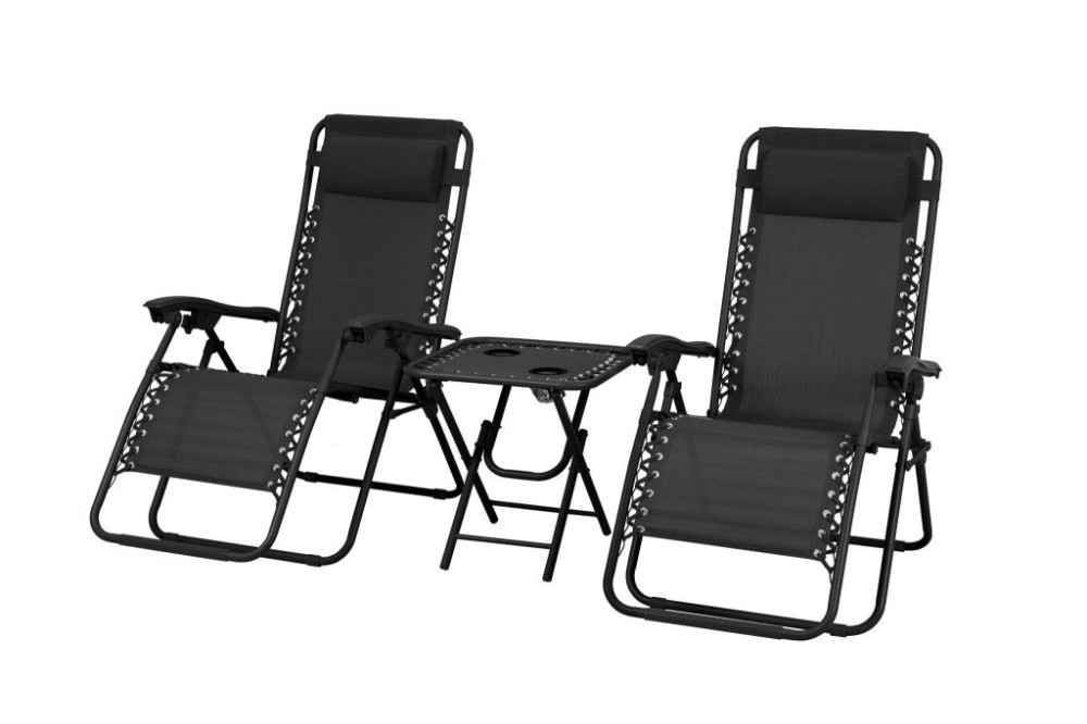 Șezlonguri de grădină Delux negre - Set de 2 șezlonguri cu 1 masă