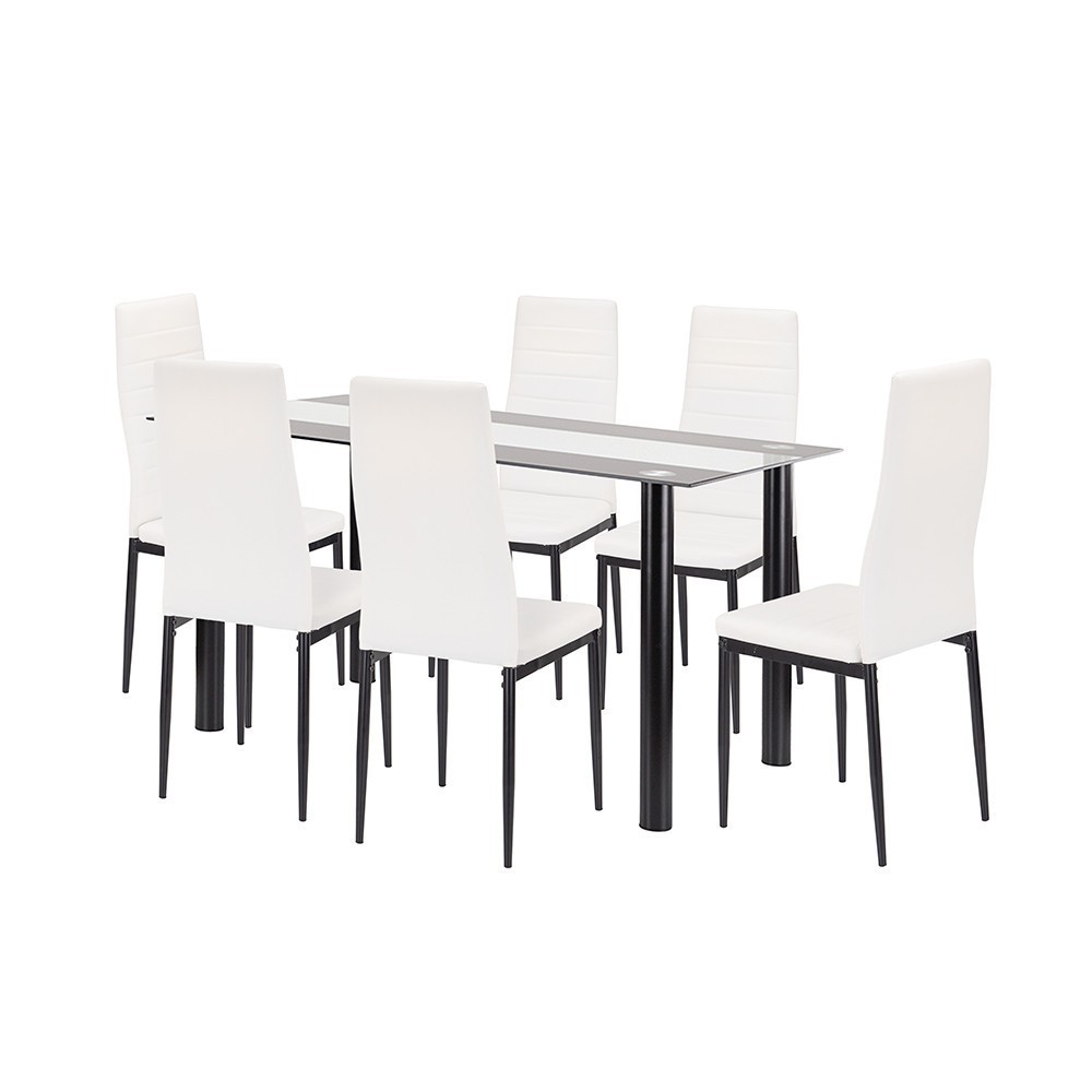 Set de masă Denton 6 în 1 – Stil modern alb-negru, cu o masă mai mare și scaune confortabile