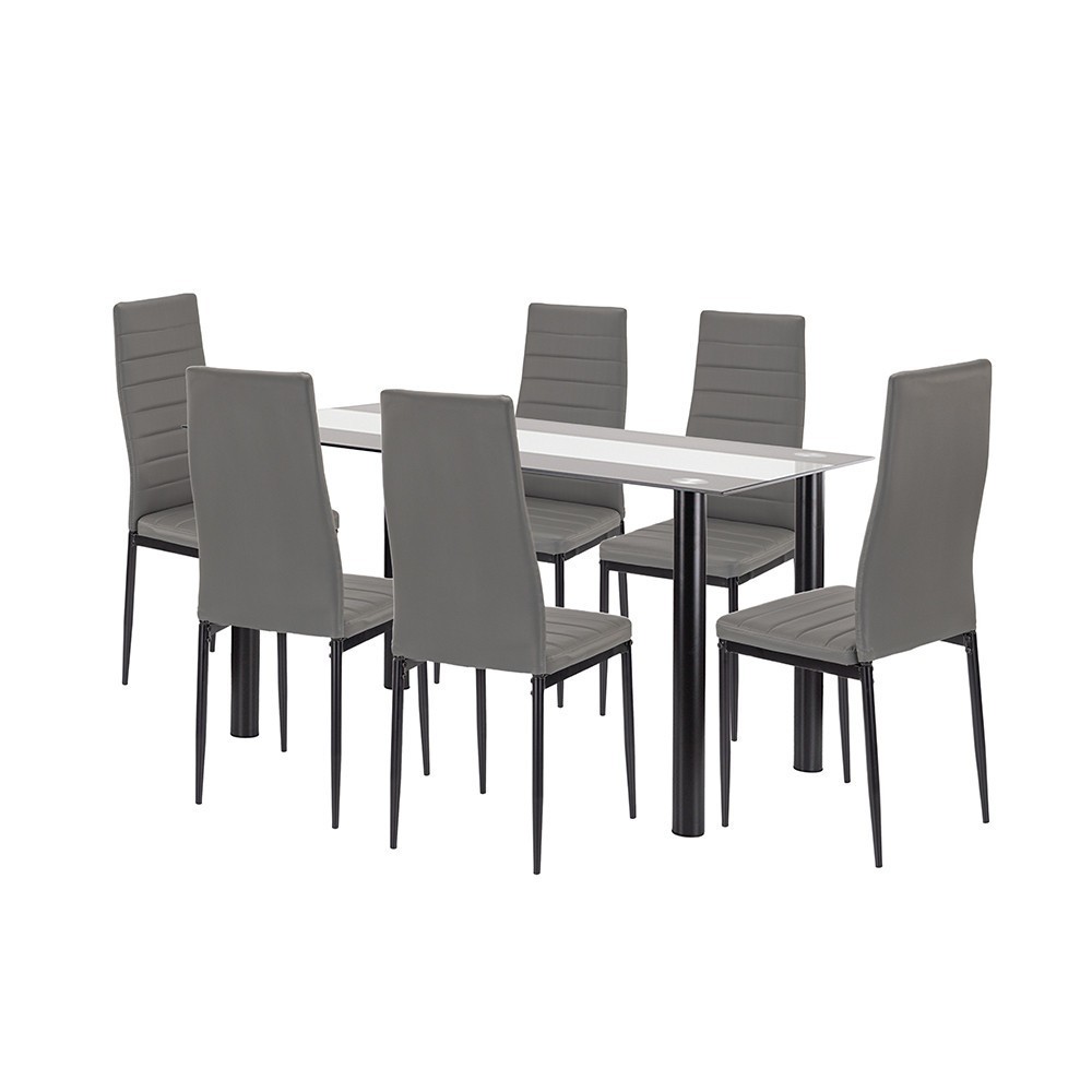 Set de masă Denton 6 în 1 – Stil modern gri-negru cu o masă mai mare și scaune confortabile