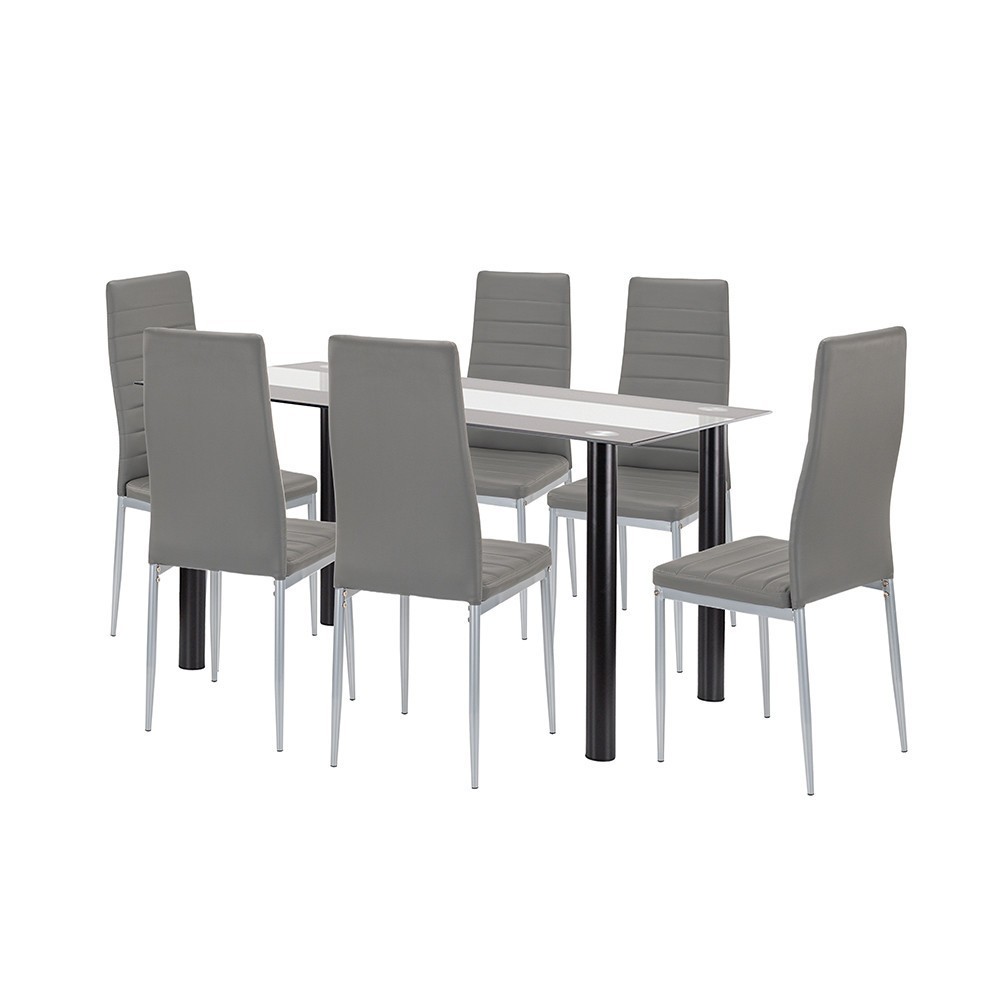 Set de masă Denton 6 în 1 – Stil modern gri pe gri, cu o masă mai mare și scaune confortabile
