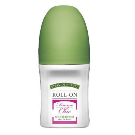 Deo Roll-On Verre De Nature Femme Chic cu extract de salvie, glicerina, provitamina B5. Nu contine: -saruri de aluminiu -parabeni -alcool etilic si coloranti A se aplica pe pielea curata si uscata. A se folosi inainte de data marcata pe ambalaj.