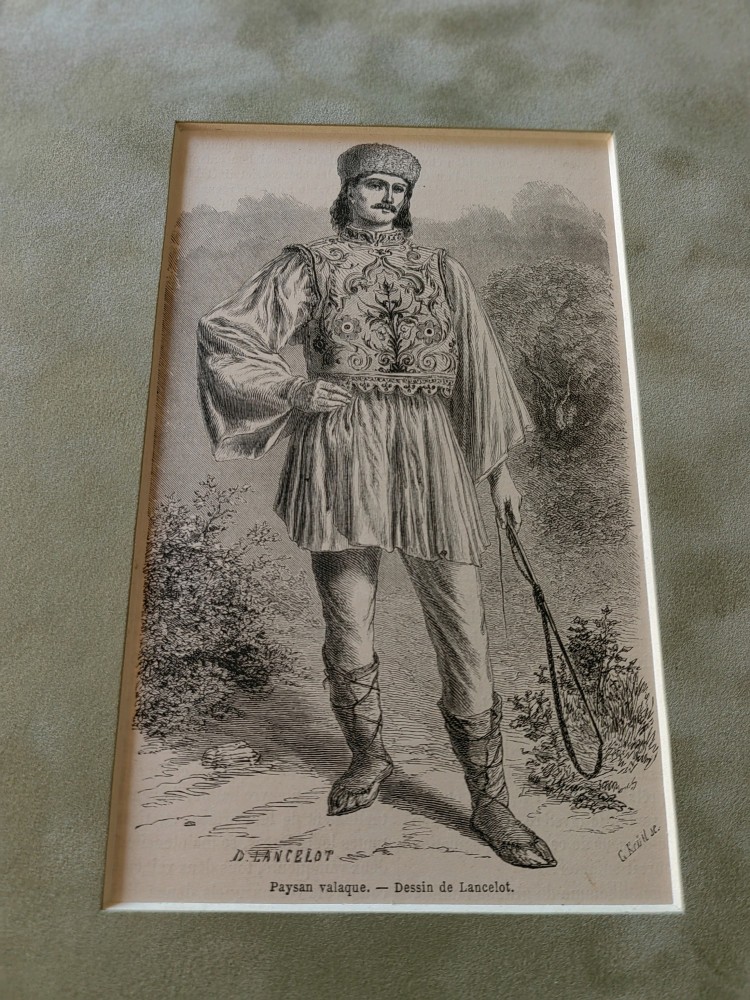 Desen gravura,Auguste Lancelot, Taran Valah, cca 1860, 10x17 cm, cu passepartout