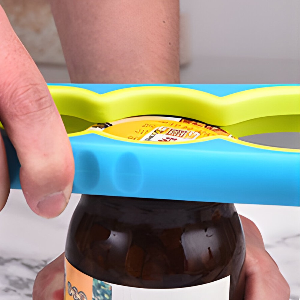 Deschizatorul universal de borcane 4 in 1 este un instrument indispensabil in bucatarie. Acesta va permite sa deschideti borcane si sticle cu capace rotunde sau capace de diferite dimensiuni. Datorita versatilitatii sale, economiseste timp si energie, eliminand dificultatea deschiderii borcanelor de diferite dimensiuni. Are 4 gauri pentru a deschide borcane cu capace cu diametrul de 30-82 mm. Acest aparat practic poate fi un accesoriu valoros pentru orice bucatarie, facilitand gatitul si prepararea alimentelor de zi cu zi.