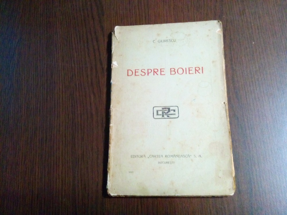 DESPRE BOIERI - C. Giurescu - Editura Cartea Romaneasca, 1920, 129 p.