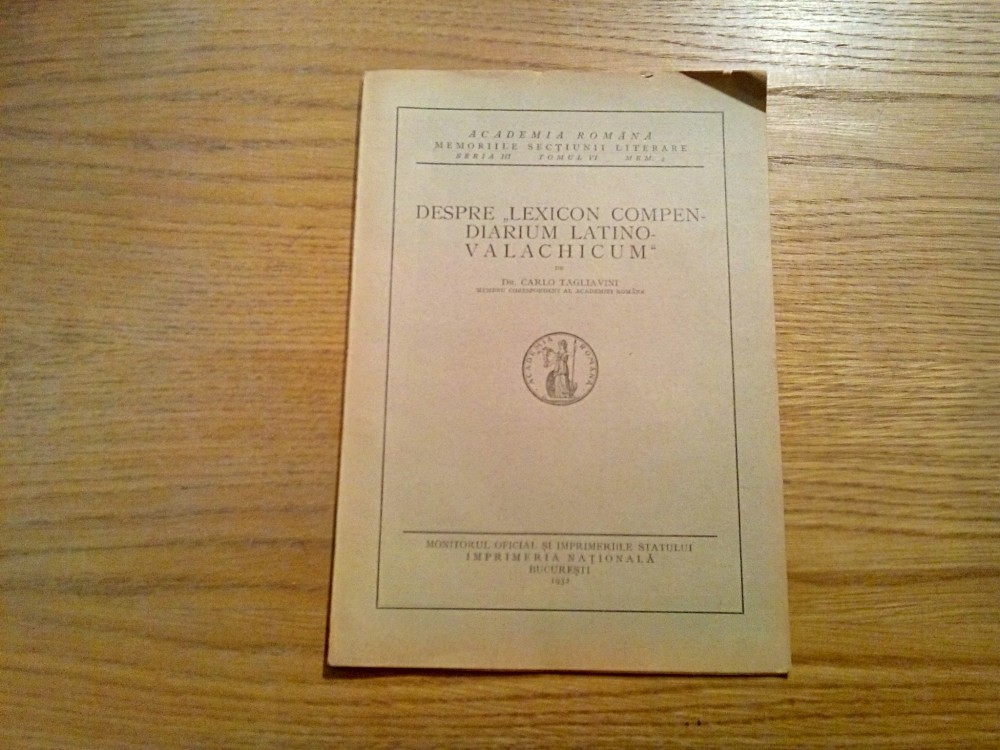 Despre "LEXICON COMPENDIARIUM LATINO-VALACHICUM" - Carlo Tagliavini - 1932