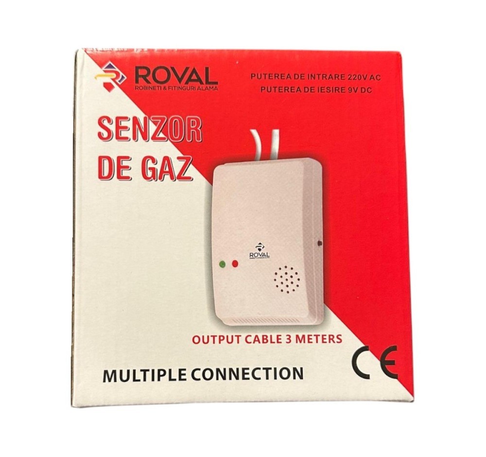 Detector de Gaz 9 - 12 V-DC 220v, Cablu 3 Metrii si Conectare Multipla Roval