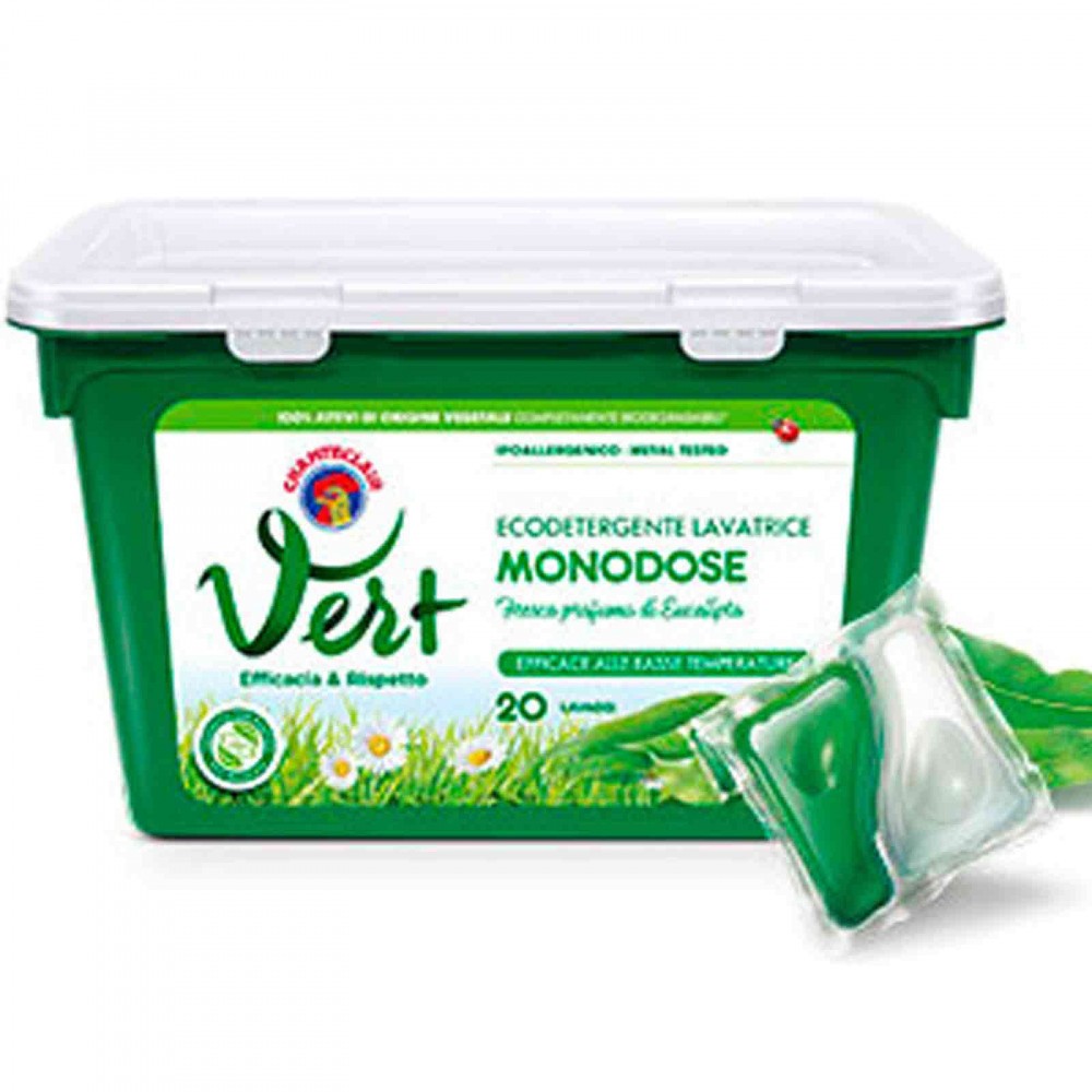 Capsulele pentru masina de spalat va garanteaza o curatare ireprosabila chiar si la temperaturi scazute, respectand toate tesaturile. Fiecare doza contine cantitatea potrivita de eco-detergent pentru a avea grija de hainele tale intr-un mod practic si rapid, fara a irosi produs si apa. Perfect pe toate tipurile de tesaturi. Ideal pe bumbac, fibre mixte si sintetice si blugi. Mirosul proaspat de eucalipt te va insoti in orice moment al zilei! Mod de utilizare: Pentru o curatare impecabila, introduceti doar o singura doza in cuva masinii dumneavoastra de spalat rufe! Un gest practic si rapid de care nu te vei mai putea lipsi! Caracteristici: Forma Textura: Capsule Tip: Automat Tip rufe: Universal Numar spalari: 20 Greutate: 480 g Cantitate: 480 ml Parfum: Eucalipt 100% Biodegradabil 100% natural