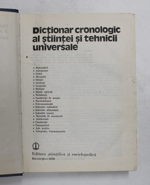 DICTIONAR CRONOLOGIC AL STIINTEI SI TEHNICII UNIVERSALE,BUCURESTI 1979