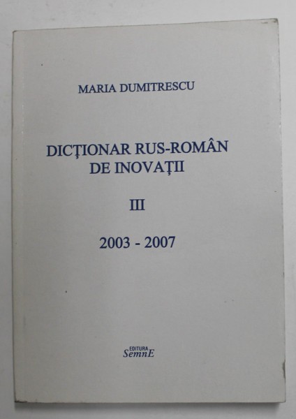 DICTIONAR RUS - ROMAN DE INOVATII , VOLUMUL III - 2003 - 2007 de MARIA DUMITRESCU , APARUTA 2007