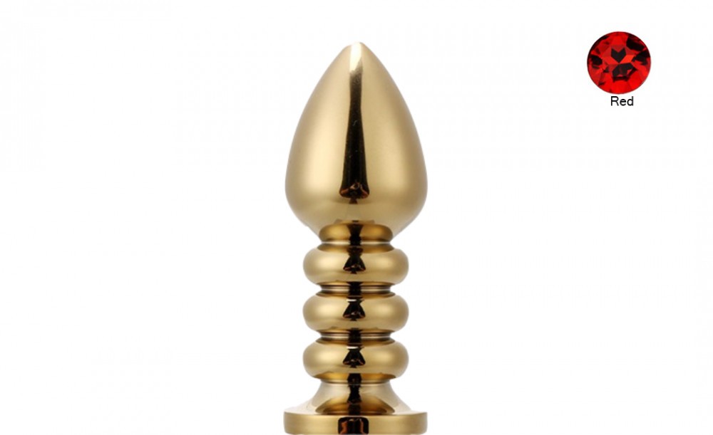 Dildo anal metalic cu forma progresiva, confectionat preponderent din material ferm si lucios de tip otel inoxidabil. Are un aspect elegant iar la baza este inclusa o piatra rosie stralucitoare, oferindu-se un look romantic si rafinat intregului ansamblu. Designul este unul conic gradual, avand varful mai subtire, care se mareste progresiv pana la intersectia cu tija groasa care face legatura cu baza. Acest aspect ajuta la o utilizare placuta, fara a crea disconfort sau neplacere. Tija are un aspect ondulat, canelat si ofera si ea la randul ei senzatii de placere la introducerea sau scoaterea jucariei. Diametrul il face potrivit a fi folosit atat de catre cei incepatori, cat si de cei avansati in folosirea jucariilor anale, deoarece se insereaza facil avand forma progresiva cu varf ascutit mentionata anterior. De asemenea, produsul se poate tine inauntrul anusului si in timpul actului sexual vaginal, oferind un plus de noutate si o experienta incitanta intre parteneri. Per ansamblu, este un produs compact si ergonomic fiind prevazut cu baza ferma ceea ce ofera o utilizare sigura, prevenind alunecarea jucariei inauntru. Totodata, baza poate fi folosita si pe post de maner pentru sustinerea lui. Se recomanda utilizarea impreuna cu lubrifianti pe baza de apa si igienizarea produsului, inainte si dupa utilizare, cu solutii speciale pentru curatarea jucariilor erotice. Dimensiuni:- lungime 13.9cm. | Material: Otel inoxidabil | Lungime: 14 cm | Diametru: 3 cm | Greutate: 140 g | Culoare: Auriu/Rosu
