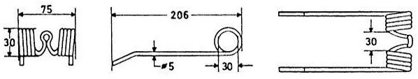 Dinte greblă pick-up 206 x 75 x 5 mm potrivit pentru Claas