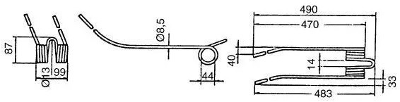 Dinte grebla rotativa 490 x 99 x 8.5 mm potrivit pentru
