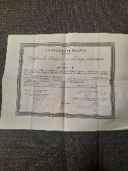 Diplomă pe piele, (45 cm / 34 cm) cu sigiliu ( timbru sec) și