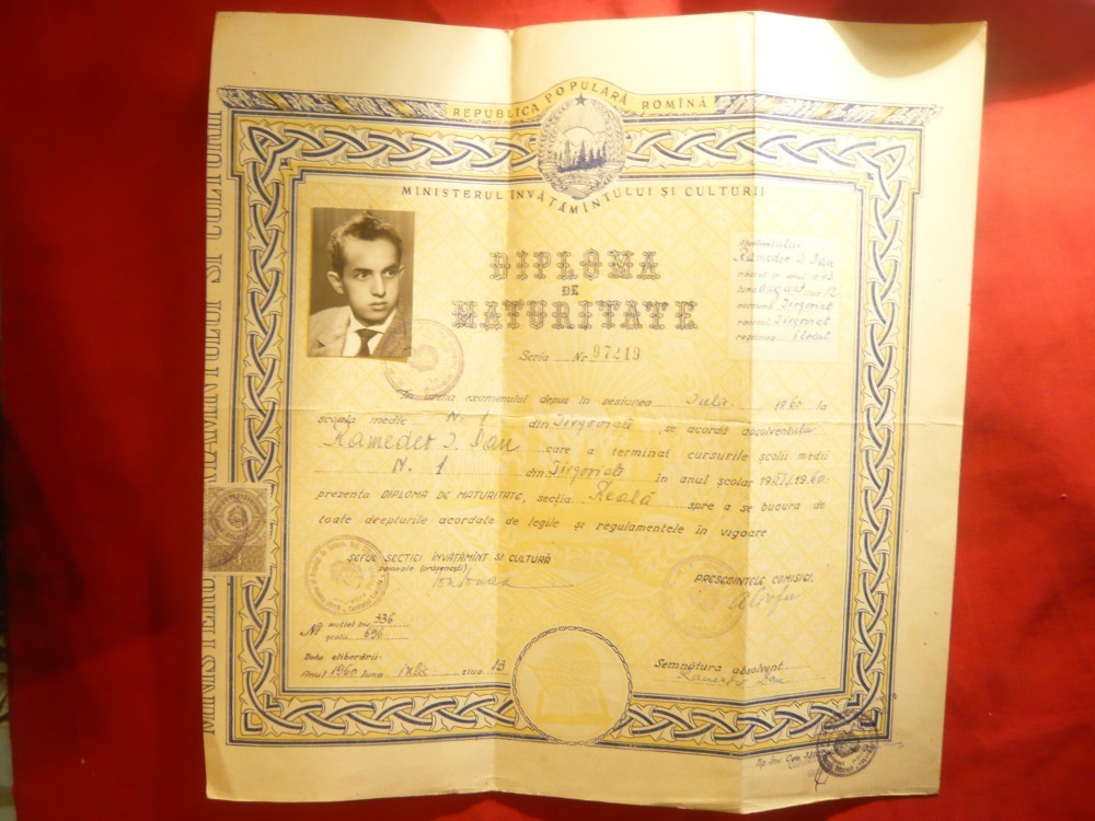 Diploma de Maturitate -Scoala Medie nr 1 Targoviste 1960