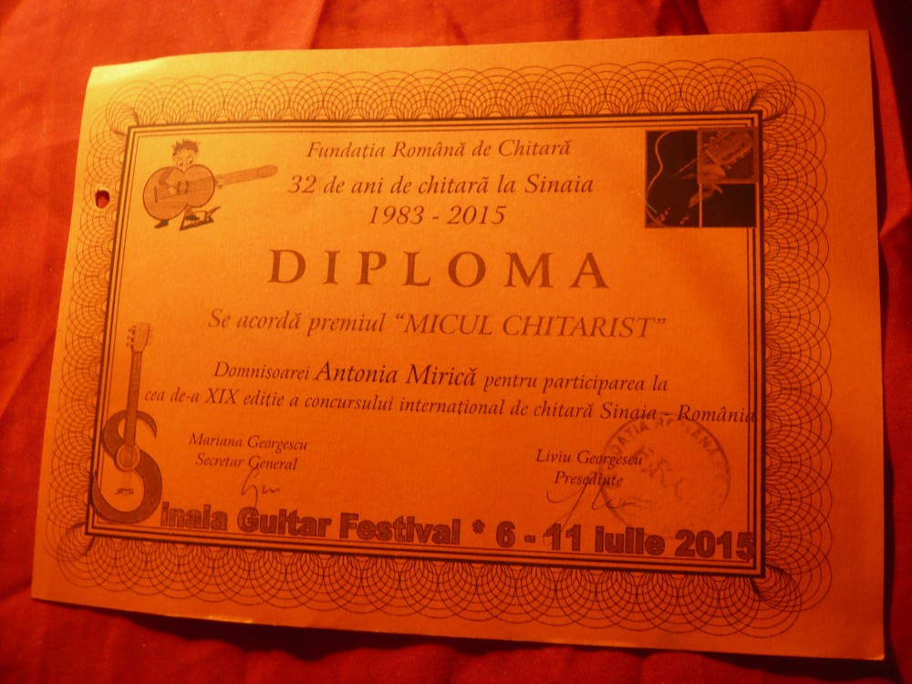 Diploma Micul Chitarist - Fundatia Romana de Chitara- Festival Internat.2015