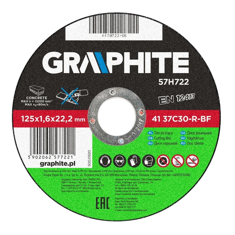 Disc debitat piatra GRAPHITE 125 x 1.6 x 22.2 mm