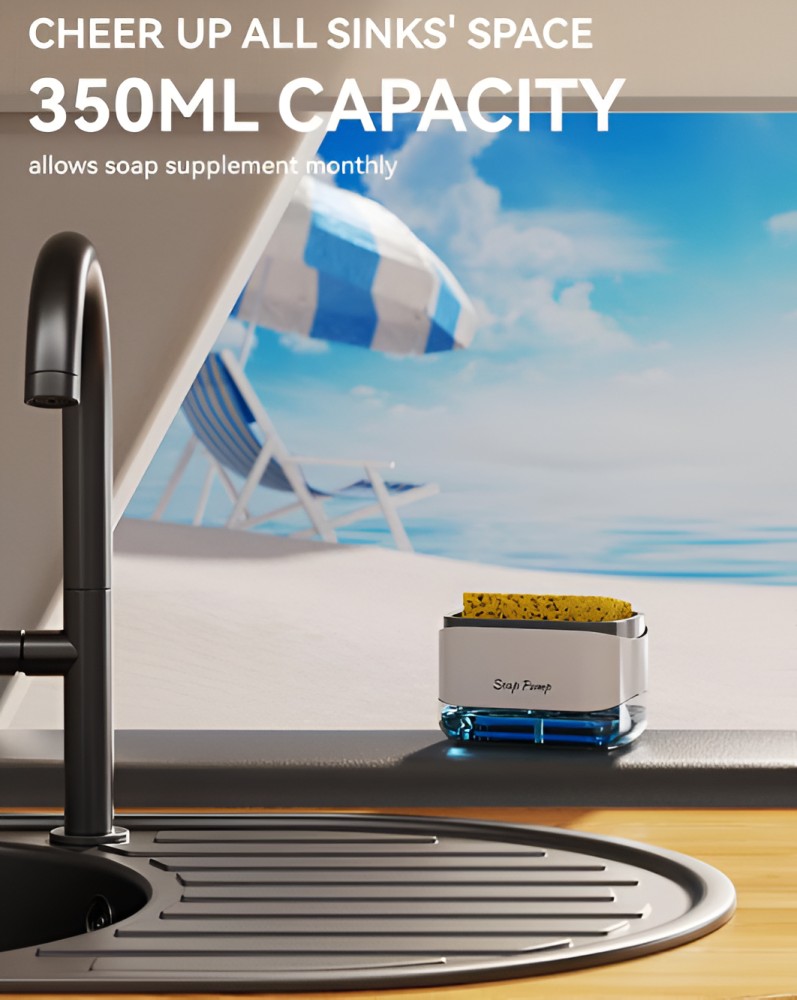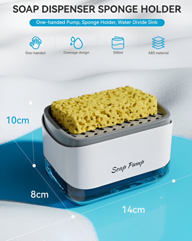 Dispenserul de Detergent de Vase 2 in 1, cu Suport de Burete, combina functionalitatea si designul practic pentru a oferi o solutie eficienta si igienica pentru curatarea vaselor in bucatarie.