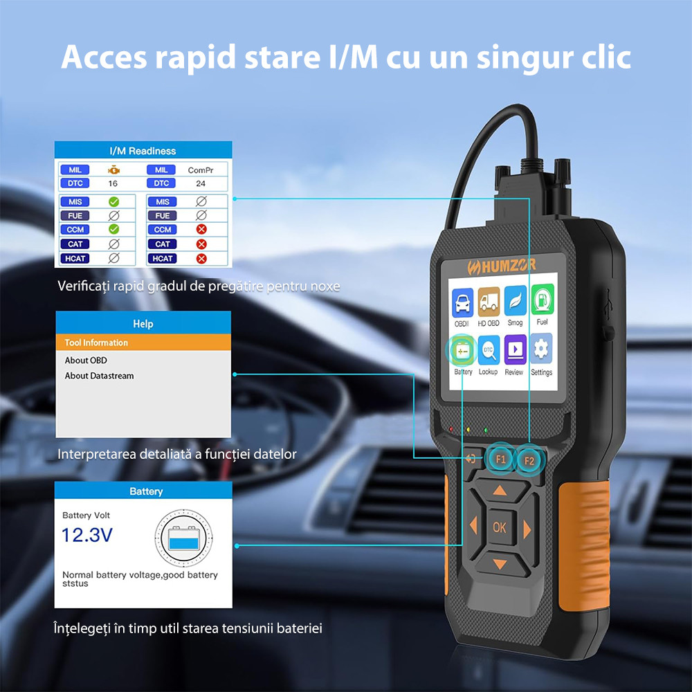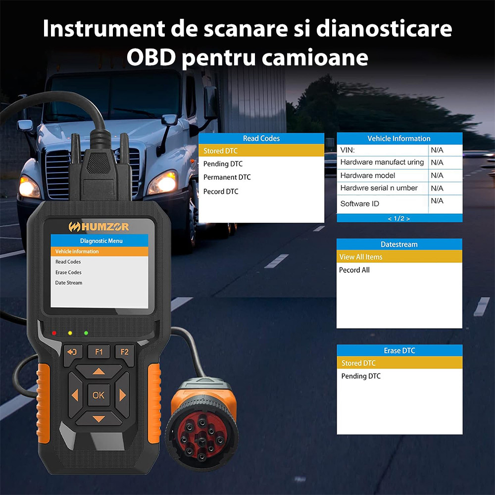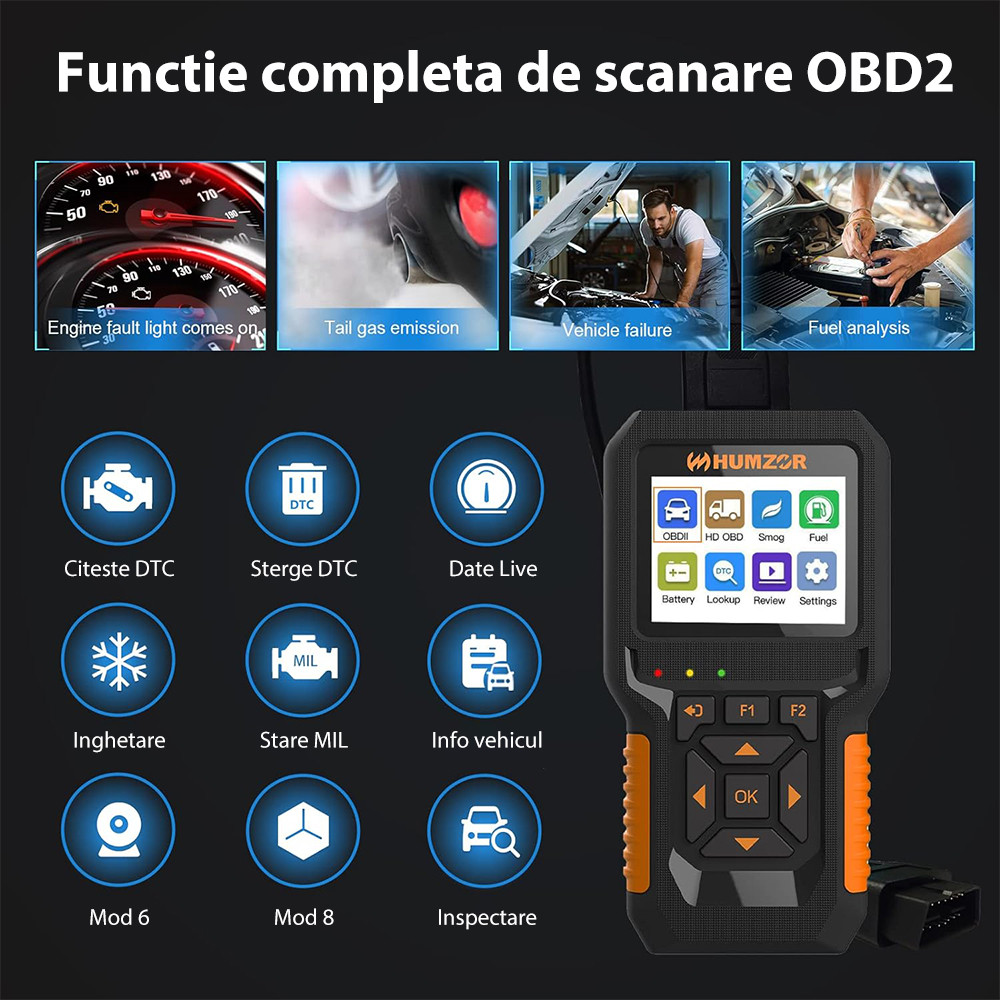 Dispozitiv De Diagnosticare Si Scanare Auto 2 in 1 HUMZOR NC610, 12-24V, OBD2, 16/9 pini, Citire/Stergere Coduri de eroare, Ecran LCD, Compatibil Turi