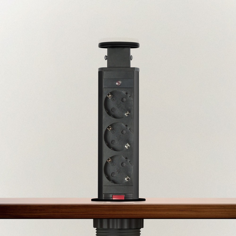 Distribuitor pop-up cu carcasa metalica si 3 prize de protectie pentru copii, pentru birouri si case.