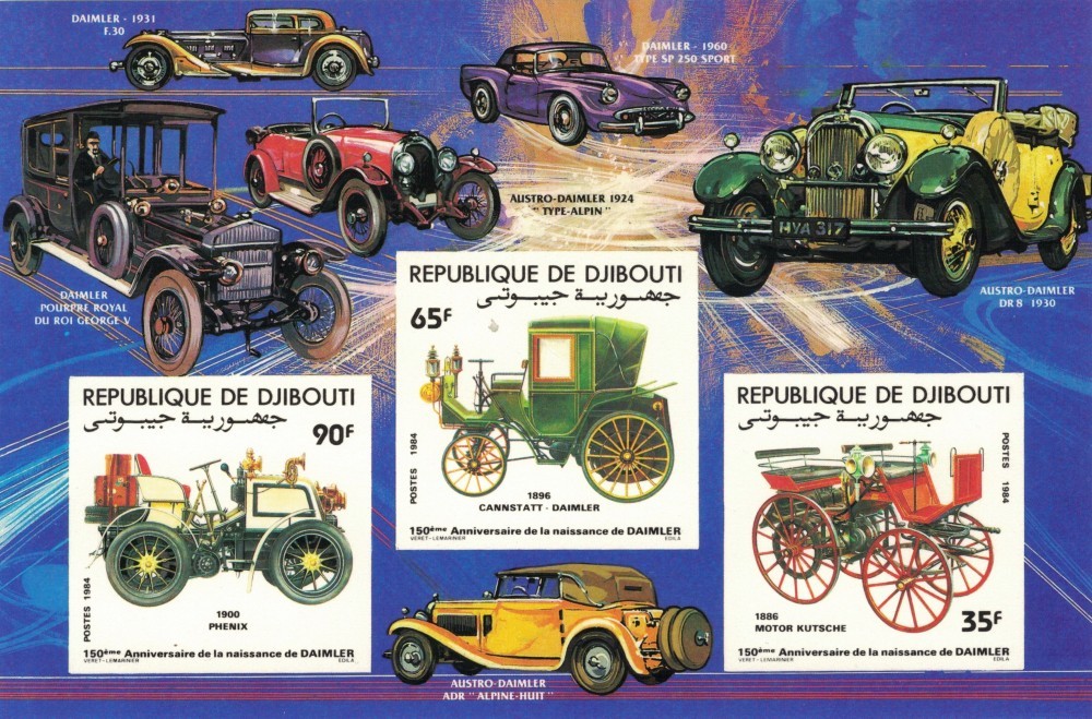 DJIBOUTI 1984 - Masini de epoca /colita MNH (Michel 25€)
