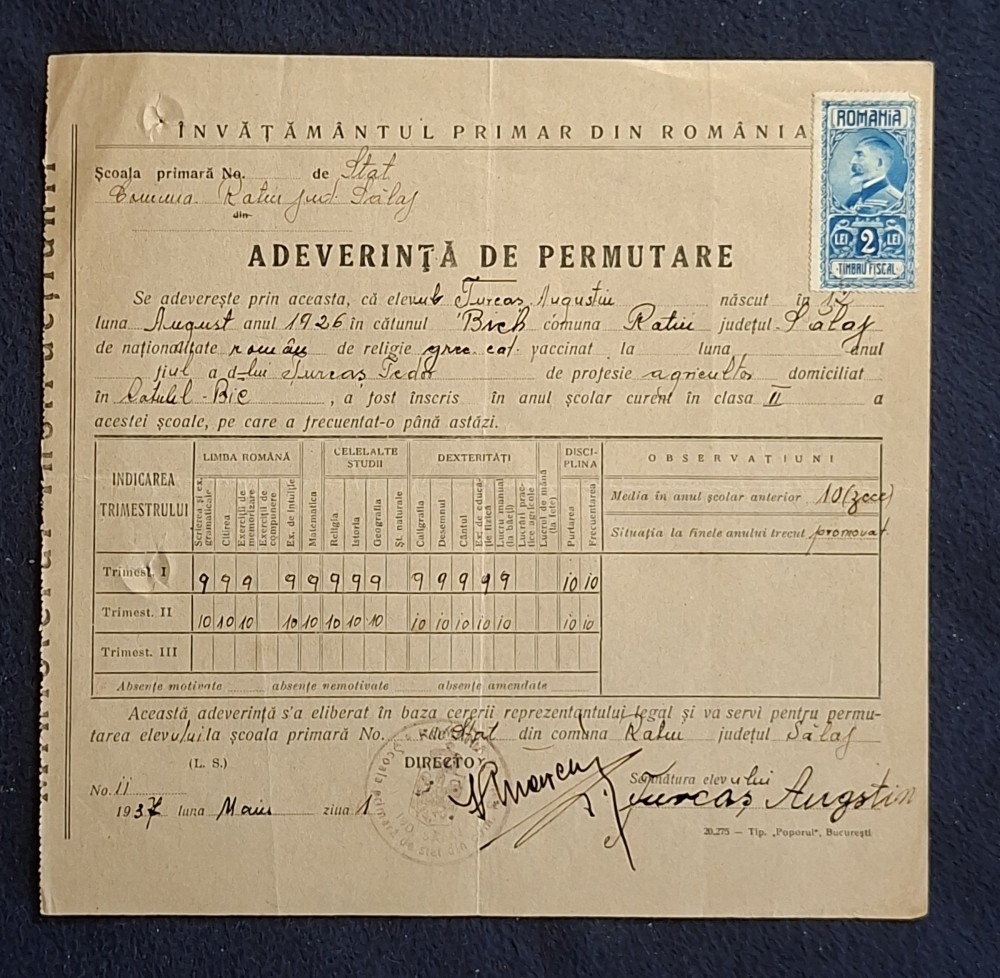 Document Adeverinta de permutare 1937