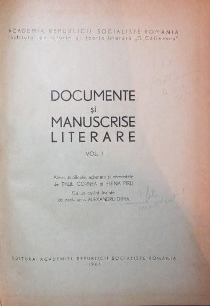 DOCUMENTE SI MANUSCRISE LITERARE, VOL 1