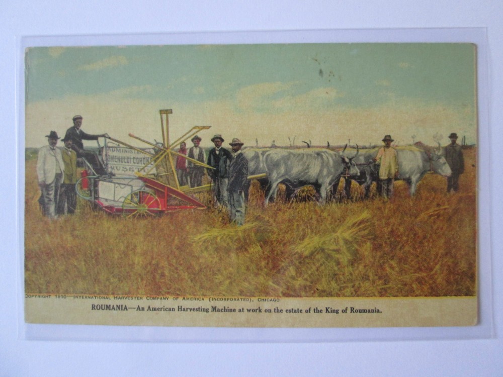 Domeniul Coroanei Rușețu carte poș.publicitară mașină recoltat americană 1910