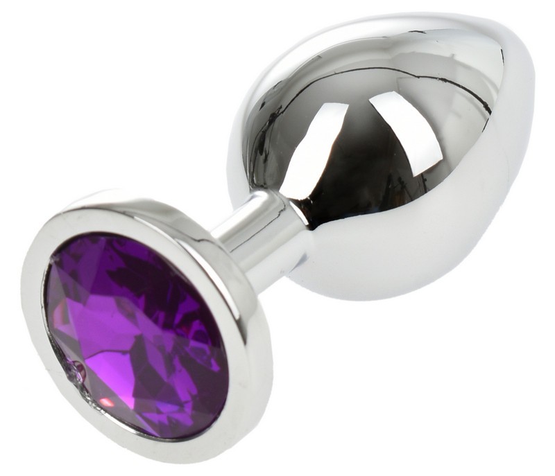 Dop Anal Metallic Buttplug, Medium, Argintiu/Mov, Passion Labs