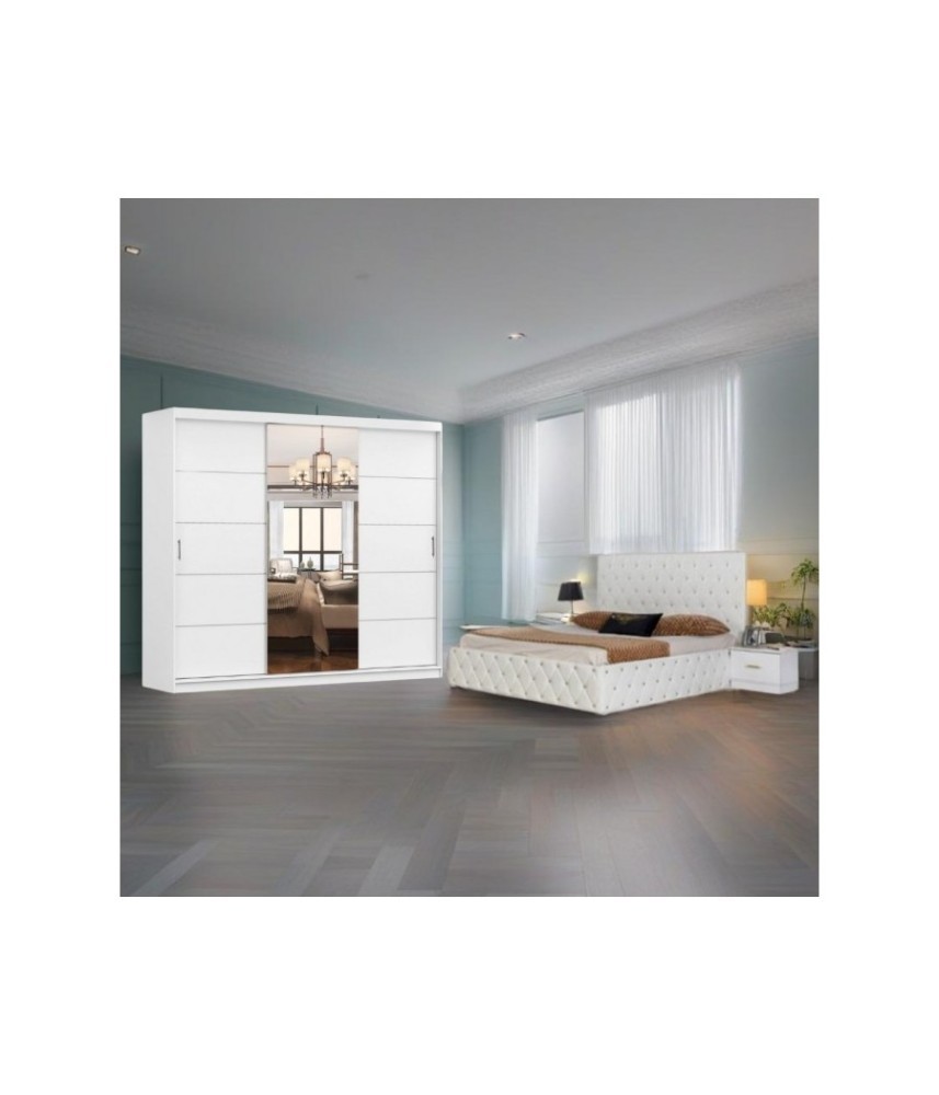 DORMITOR DAVID - ALB - PRET 3499 RON Pat : 160x200 Noptiere : 35 X 35 X 24 cm Dulap: Înălțime 208 cm , Latime 250 cm , Adâncime , 60 cm TRANSPORT GRATUIT 3-5 ZILE LUCRATOARE