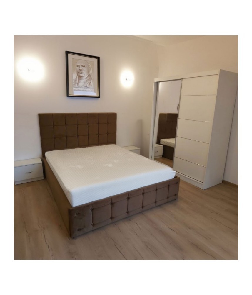 Dimensiuni Pat - Lungime 200m / Latime 160cm Dimensiuni Noptiera - Lungime 50cm / Latime 35cm / Inaltime 38cm Dimensiuni Sifonier - Lungime 150cm / Latime 60cm / Inaltime 208cm Tansport Gratuit in toata Romania in 3-5 Zile Lucratoare Pat Tapitat ( CATIFEA )