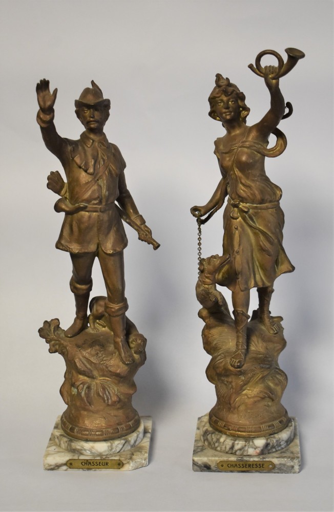 Doua statuete pereche „Vanatorul” si „Vanatoarea”, atelier francez