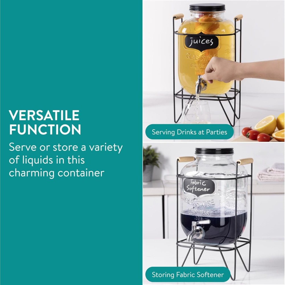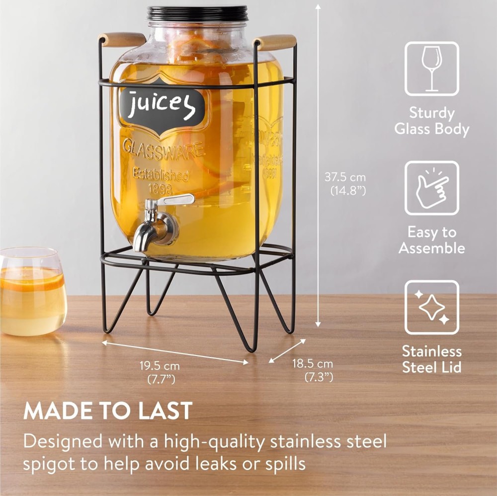Adăugați astăzi dispenserul de băuturi din sticlă Navaris, un gadget elegant și extrem de practic pentru bucătăria dumneavoastră, perfect pentru orice ocazie! Ideal pentru a servi băuturi răcoritoare, cocktailuri, limonadă sau apă la orice petrecere!