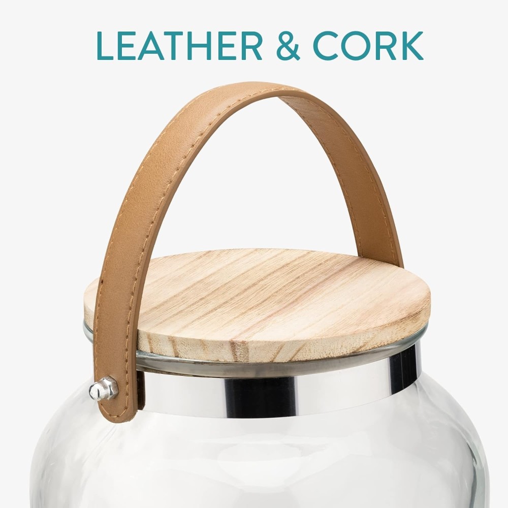 Mânerul din piele face transportul mai ușor și conferă un aspect elegant. Combinat cu capacul din plută și baza din lemn de platane de înaltă calitate, rezultatul final este unul superb și natural!
